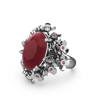 Kök yakut 8 ayar beyaz altın yüzük