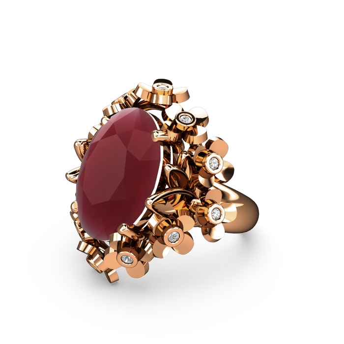 Kök yakut ve beyaz zirkon 18 ayar rose altın yüzük
