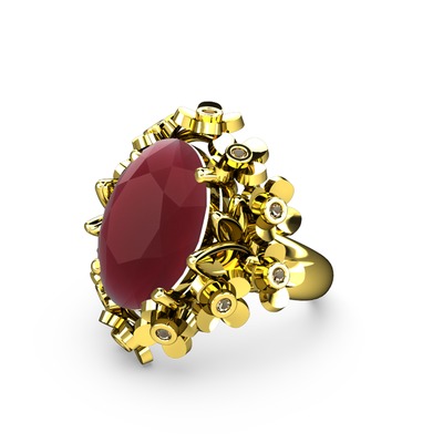 Kök yakut ve dumanlı kuvars 925 ayar altın kaplama gümüş yüzük