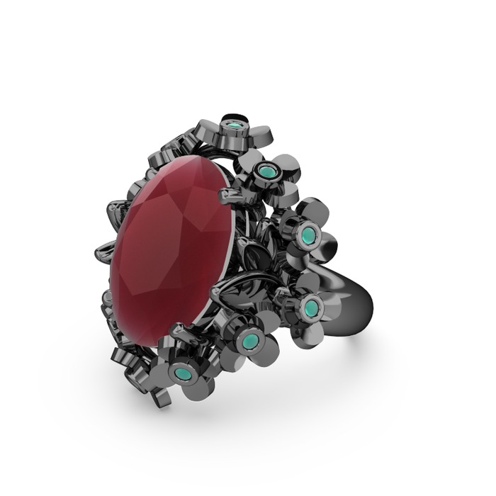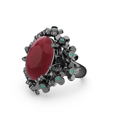 Kök yakut ve kök zümrüt 925 ayar siyah rodyum kaplama gümüş yüzük