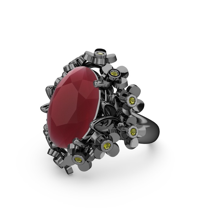 Kök yakut ve peridot 925 ayar siyah rodyum kaplama gümüş yüzük