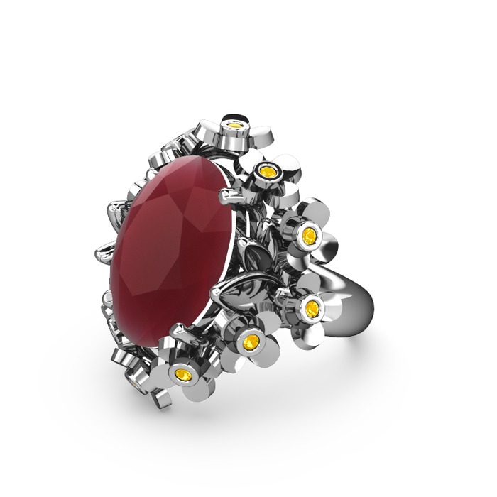 Kök yakut ve sitrin 925 ayar gümüş yüzük