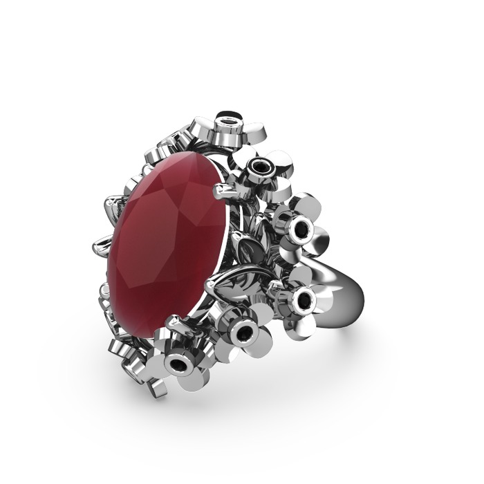 Kök yakut ve siyah zirkon 925 ayar gümüş yüzük