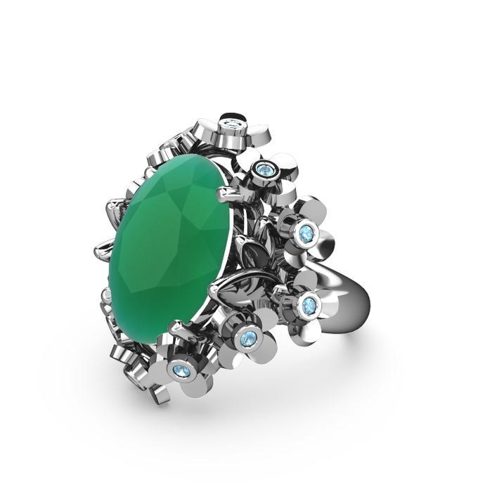 Kök zümrüt ve akuamarin 925 ayar gümüş yüzük