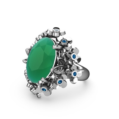 Kök zümrüt ve lab safir 8 ayar beyaz altın yüzük