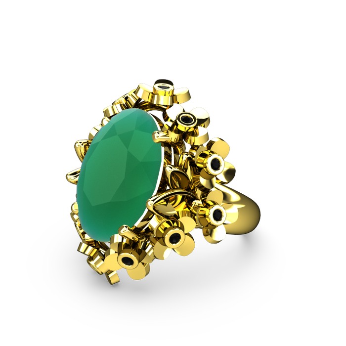 Kök zümrüt ve siyah zirkon 8 ayar altın yüzük
