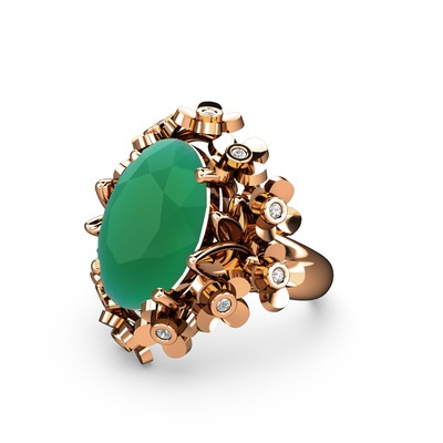Kök zümrüt ve swarovski 14 ayar rose altın yüzük