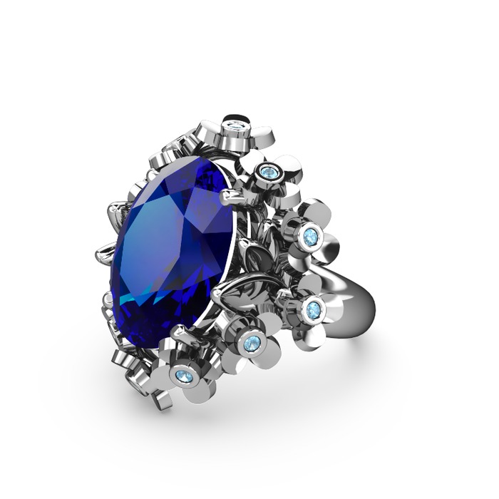 Lab safir ve akuamarin 8 ayar beyaz altın yüzük
