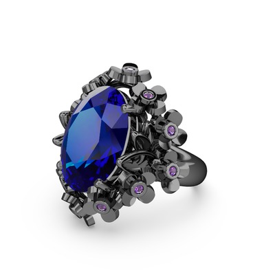 Lab safir ve ametist 925 ayar siyah rodyum kaplama gümüş yüzük