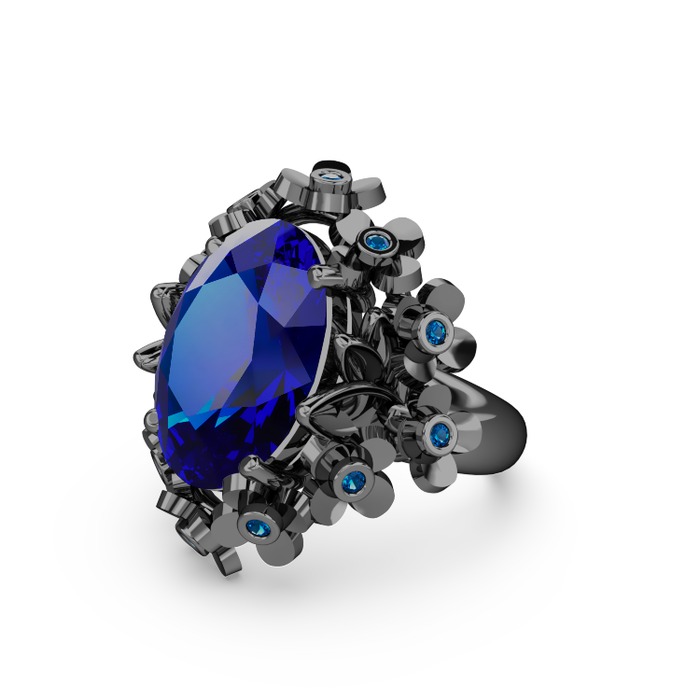 Lab safir 925 ayar siyah rodyum kaplama gümüş yüzük