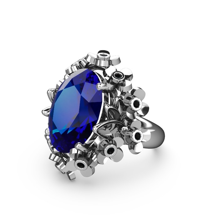 Lab safir ve siyah zirkon 925 ayar gümüş yüzük