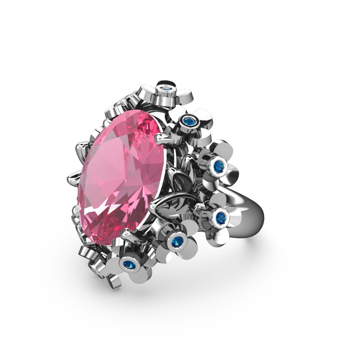 Pembe kuvars ve lab safir 14 ayar beyaz altın yüzük