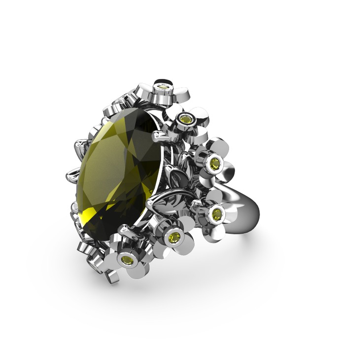 Peridot 14 ayar beyaz altın yüzük
