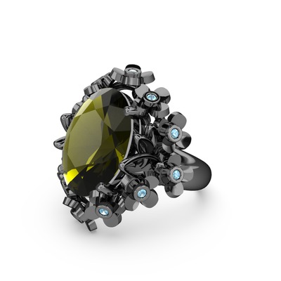 Peridot ve akuamarin 925 ayar siyah rodyum kaplama gümüş yüzük