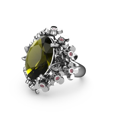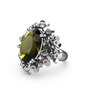 Peridot ve kök yakut 8 ayar beyaz altın yüzük