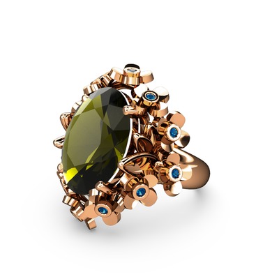 Peridot ve lab safir 8 ayar rose altın yüzük