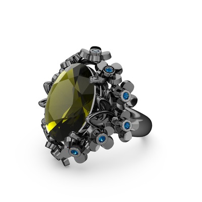 Peridot ve lab safir 925 ayar siyah rodyum kaplama gümüş yüzük