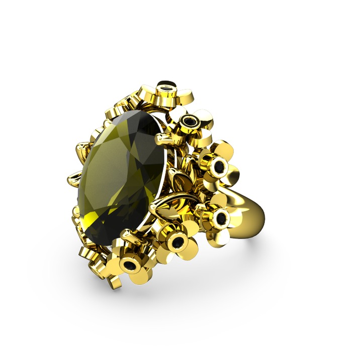 Peridot ve siyah zirkon 18 ayar altın yüzük