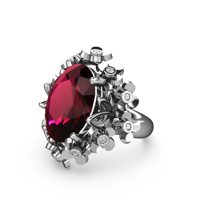Rodolit garnet ve pırlanta 14 ayar beyaz altın yüzük (0.18 karat)