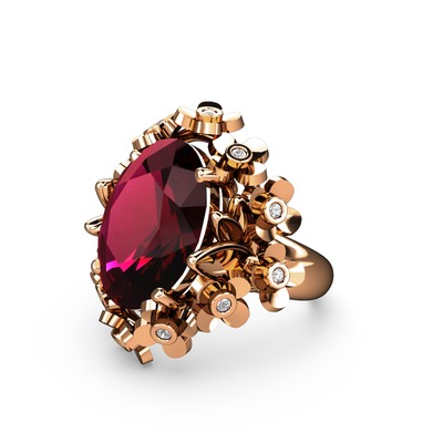 Rodolit garnet ve pırlanta 14 ayar rose altın yüzük (0.18 karat)