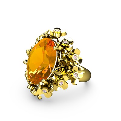 Sitrin ve pembe kuvars 8 ayar altın yüzük