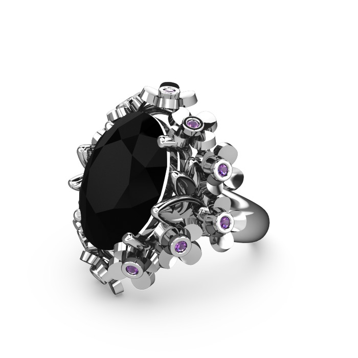 Siyah zirkon ve ametist 18 ayar beyaz altın yüzük