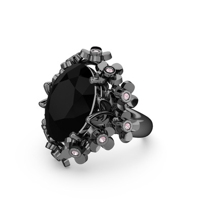 Siyah zirkon ve pembe kuvars 925 ayar siyah rodyum kaplama gümüş yüzük