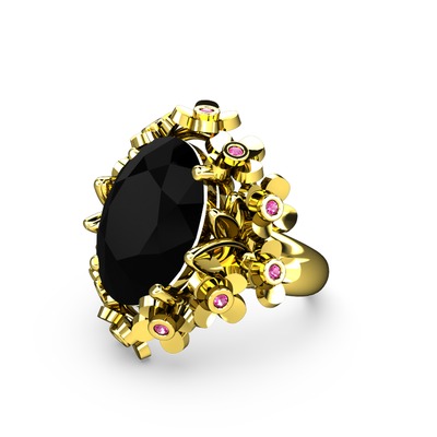 Siyah zirkon ve rodolit garnet 18 ayar altın yüzük