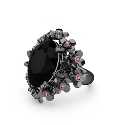 Siyah zirkon ve rodolit garnet 925 ayar siyah rodyum kaplama gümüş yüzük