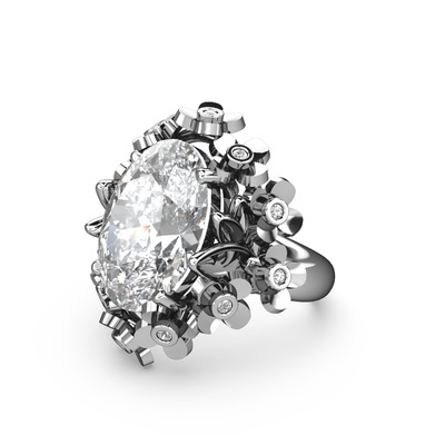 Swarovski ve beyaz zirkon 8 ayar beyaz altın yüzük