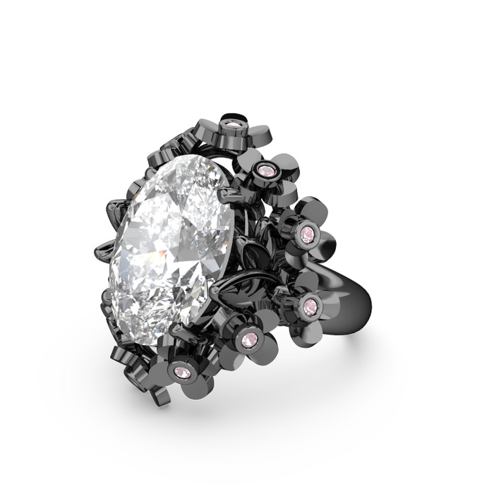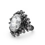 Swarovski ve pembe kuvars 925 ayar siyah rodyum kaplama gümüş yüzük