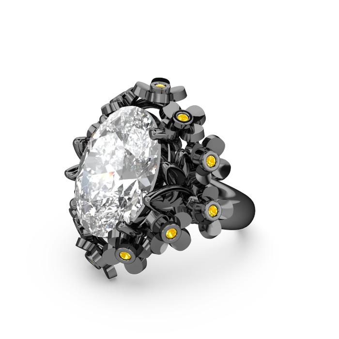Swarovski ve sitrin 925 ayar siyah rodyum kaplama gümüş yüzük