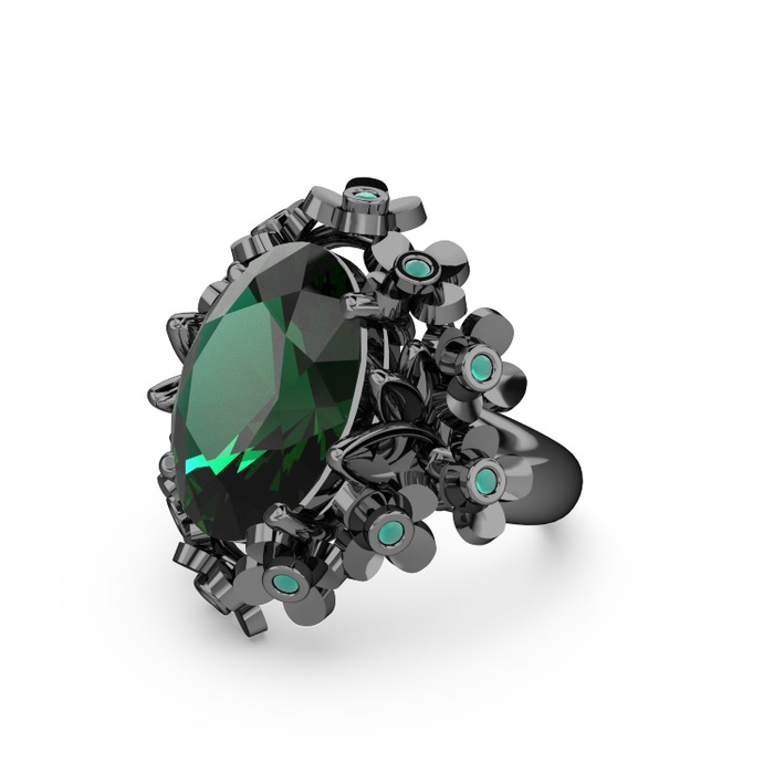 Yeşil kuvars ve kök zümrüt 925 ayar siyah rodyum kaplama gümüş yüzük