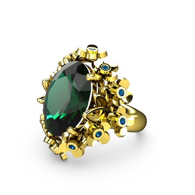 Yeşil kuvars ve lab safir 925 ayar altın kaplama gümüş yüzük