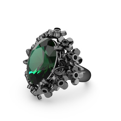 Yeşil kuvars ve siyah zirkon 925 ayar siyah rodyum kaplama gümüş yüzük