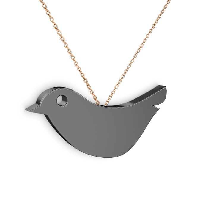 925 ayar siyah rodyum kaplama gümüş kolye (40 cm rose altın rolo zincir)