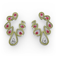 Yeşil kuvars ve beyaz zirkon 14 ayar altın küpe