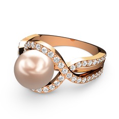 Pembe inci ve beyaz zirkon 8 ayar altın yüzük