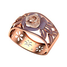 Lab safir ve beyaz zirkon 18 ayar rose altın yüzük