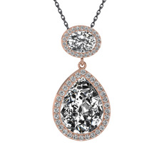 Beyaz zirkon 925 ayar siyah rodyum kaplama gümüş kolye (40 cm rose altın rolo zincir)