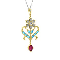 Beyaz zirkon, akuamarin ve sitrin 18 ayar altın kolye (40 cm gümüş rolo zincir)