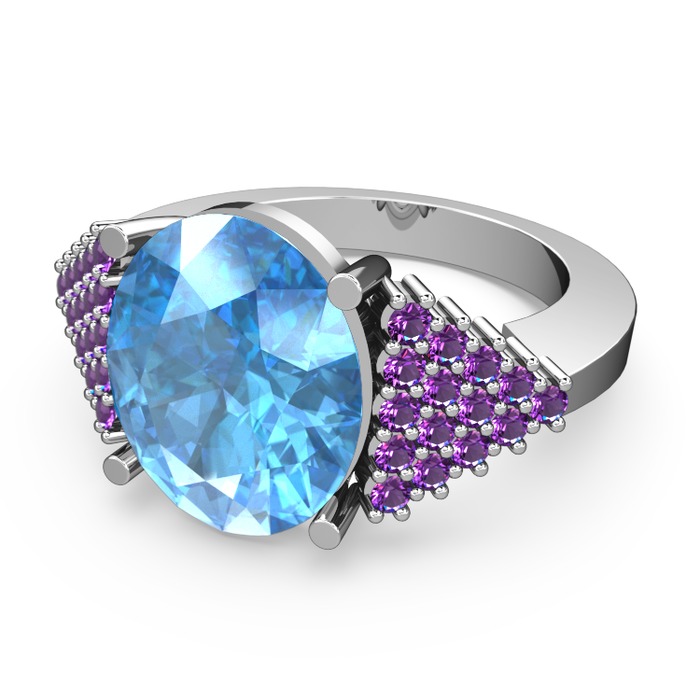 Akuamarin ve ametist 14 ayar beyaz altın yüzük