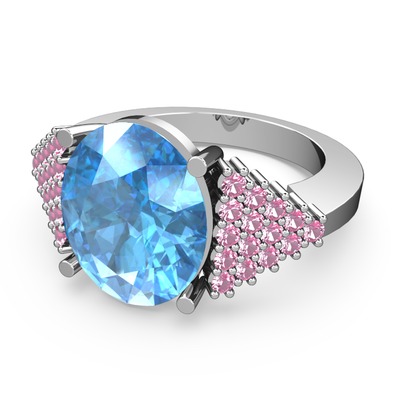 Akuamarin ve pembe kuvars 18 ayar beyaz altın yüzük