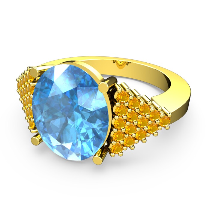 Akuamarin ve sitrin 18 ayar altın yüzük