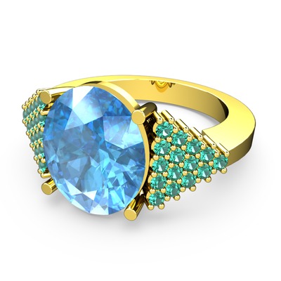 Akuamarin ve yeşil kuvars 925 ayar altın kaplama gümüş yüzük