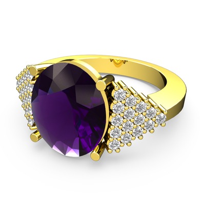 Ametist ve beyaz zirkon 925 ayar altın kaplama gümüş yüzük