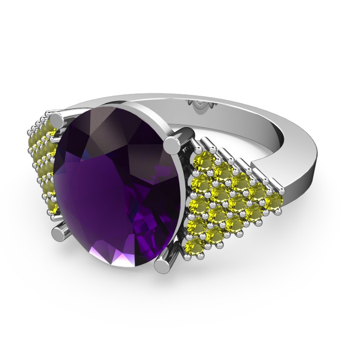 Ametist ve peridot 8 ayar beyaz altın yüzük