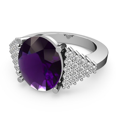 Ametist ve swarovski 18 ayar beyaz altın yüzük