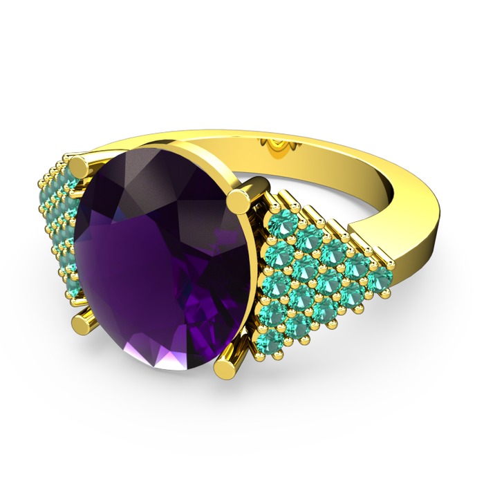 Ametist ve yeşil kuvars 18 ayar altın yüzük