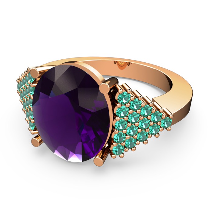 Ametist ve yeşil kuvars 8 ayar rose altın yüzük
